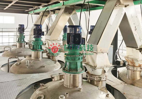 液體黃腐酸鉀水溶肥生產設備是信遠科技結合國內外液體水溶肥設備制造經驗和客戶使用反饋情況,研發制造了全新一代集配料、混合、攪拌、螯合、成品儲料、灌裝、碼垛于一體全自動生產設備。設備自動化程度高、結構緊湊,節省人工,生產效率高、操作簡單、容易維護、投資性價比高,設備采用工業級不銹鋼,防腐性能強,設備使用壽命長。可生產大量、中量、微量元素等多種類型的液體水溶肥。信遠科技公司可根據客戶的產能需求、廠房結構/面積、產線配置、投資預算提供液體水溶肥不同的生產解決方案。