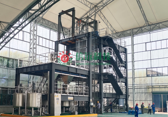 液體腐植酸水溶肥設備是信遠科技結合國內外液體水溶肥設備制造經驗和客戶使用反饋情況,研發制造了全新一代集配料、混合、攪拌、螯合、成品儲料、灌裝、碼垛于一體全自動生產設備。設備自動化程度高、結構緊湊,節省人工,生產效率高、操作簡單、容易維護、投資性價比高,設備采用工業級不銹鋼,防腐性能強,設備使用壽命長。可生產大量、中量、微量元素等多種類型的液體水溶肥。信遠科技公司可根據客戶的產能需求、廠房結構/面積、產線配置、投資預算提供液體水溶肥不同的生產解決方案。