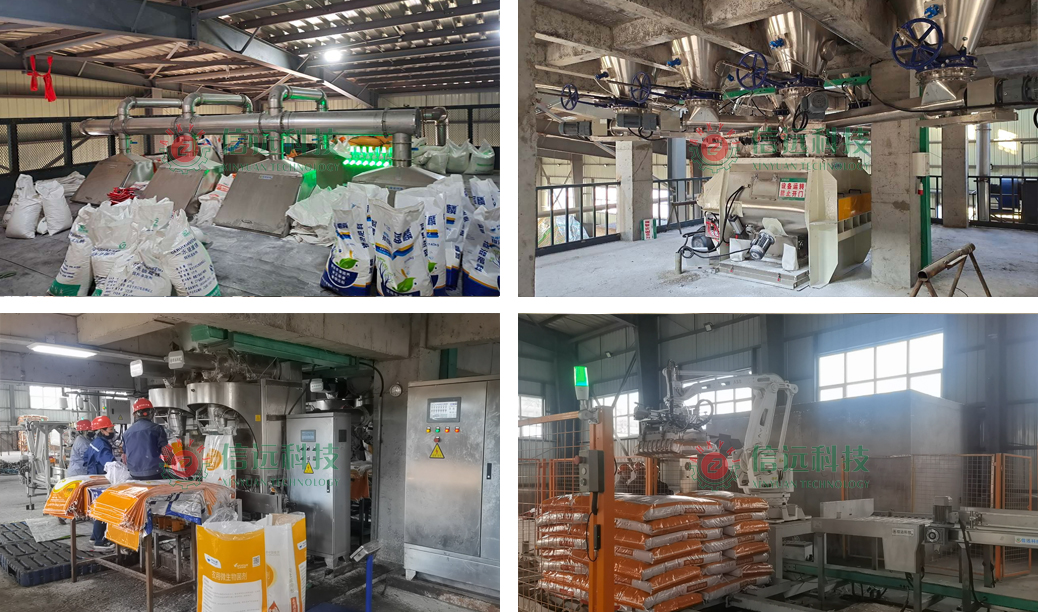信遠科技為廣大肥料行業客戶推薦的這套年產1-2萬噸的固體粉劑水溶肥設備配置方案,適用于充填容量為5-50kg的編織袋、PP/PE袋,可以包裝大量元素水溶肥、中量元素水溶肥、微量元素水溶肥、含氨基酸水溶肥、含腐植酸水溶肥、含黃腐酸鉀水溶肥等不同配方的固體粉劑水溶肥產品。該套方案的前端和后端均采用了全自動化的設備系統,把復雜繁重的作業工段交給設備來完成,減少了人工成本、降低了勞動強度、提高了產品配混的標準化和理包碼垛搬運的效率。