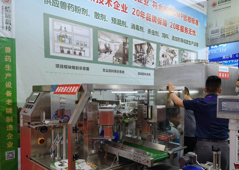 在這三個國家級的大型行業展會上,信遠科技分別展出了獸藥、肥料、食品三個領域的明星產品設備和生產解決方案。展會期間,信遠科技的展位異常火爆,吸引了眾多參會客戶駐足觀看咨詢。信遠科技現場工作人員熱情接待、認真傾聽、詳細解說,與每一位前來參觀的客戶都進行了深入溝通,并針對客戶的不同需求提供了個性化的解決方案,受到了參會客戶的一致認可和好評。2021年6月下旬,安徽信遠包裝科技有限公司分別應邀參加了中國獸醫藥品監察所、中國獸藥協會在鄭州國際會展中心聯合主辦的第八屆中國獸藥大會;中國食品和包裝機械工業協會與中國包裝和食品機械有限公司在上海國家會展中心聯合主辦的第二十一屆上海國際食品加工與包裝機械展覽會;中國國際貿易促進委員會化工行業分會在上海新國際博覽中心主辦的第二十二屆中國國際農用化學品及植保展覽會(CAC2021)三大展會。