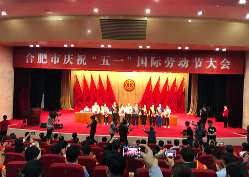4月28日,合肥市政府慶祝“五一”國際勞動節暨五一勞動獎表彰大會在合肥市委辦公大樓大禮堂隆重舉行。,我司總經辦主任胡思琪女士、研發中心鄒長林主任主任分別榮獲“合肥市五一勞動獎章”和“”合肥市金牌職工“”榮譽稱號,在此,我司總經理肯定了兩位同事的工作,并號召公司全員向兩位同事學習,大家擼起袖子加油干,幸福是奮斗出來的!