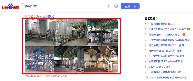 (以上為百度搜索“水溶肥設備”,首頁收錄展現的圖片基本都是信遠科技的圖片)