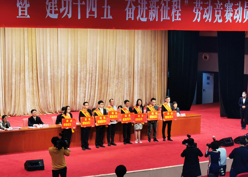 2021年4月30日,熱烈祥和的合肥市政府禮堂內,正在舉行慶祝“五一”暨“建功十四五 奮進新征程”勞動競賽動員大會。省委常委、市委書記虞愛華,市委副書記、市長羅云峰等市領導端坐在主席臺上。伴隨著雄壯的頒獎進行曲、主持人鏗鏘有力的誦讀著五一勞動獎章獲得者的名字,獲獎者們分組上臺接受領導頒獎。此時熱烈的掌聲響徹整個禮堂,耀眼的鎂光燈照亮著每一位獲獎者的臉龐,匯聚成一首致敬勞動者的贊歌。這首贊歌里的主人公就有來自信遠科技的電氣工程師——王聲根。