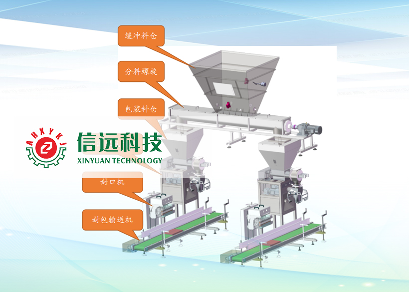安徽信遠包裝科技小編接下來為大家講解全自動粉劑水溶肥生產設備中計量包裝系統部分