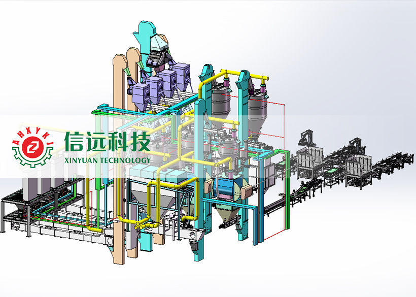 1、集投料、粉碎、配料、混合、計量、包裝、碼垛、除塵于一體
