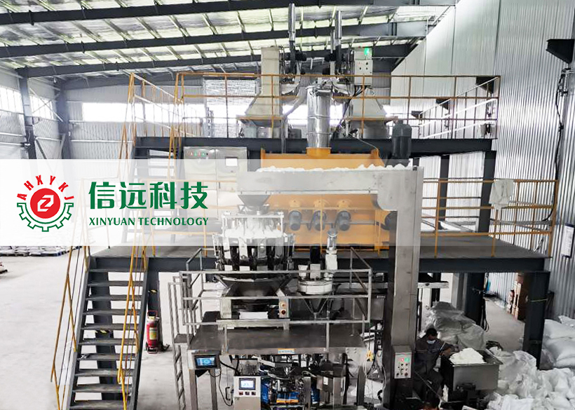 用戶要求在新建廠房內,裝置一套可以生產袋中袋成品的生產線設備。該裝置需要配置前端的投料配混工段,后端的包裝工段需要快速完成小包裝袋的成品生產,并將定量的成品小包裝袋灌裝至大包裝袋,然后封口制成大包裝袋成品。該套生產線設備需具備生產多種類型的固體物料產品,工藝控制在國內同類裝置先進水平。目前,該項目已交付驗收,正式投產。