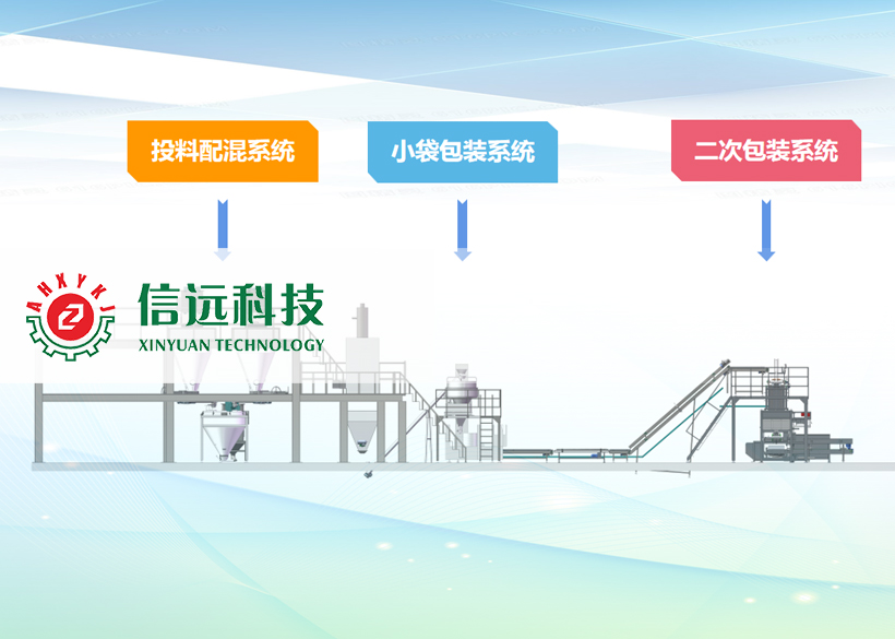 ■集投料、配料、混合、小包給袋、上袋、計量、充填、封口、成品輸送、理包,大包給袋、上袋、計數、灌裝、封口、成品輸送于一體。