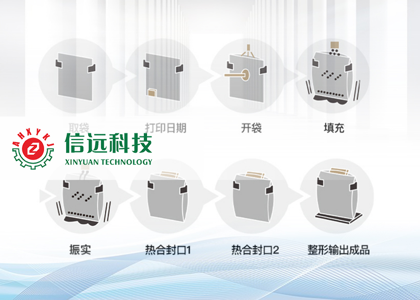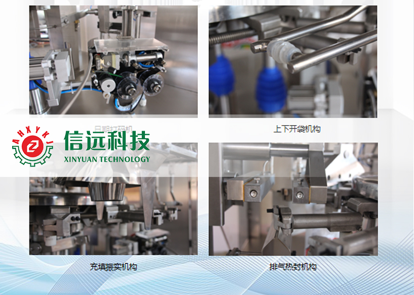 包裝機根據程序設計,自動完成取袋、立式上袋、打碼、開袋、充填、振實、熱封以及整形輸出等各工位的有序運行。