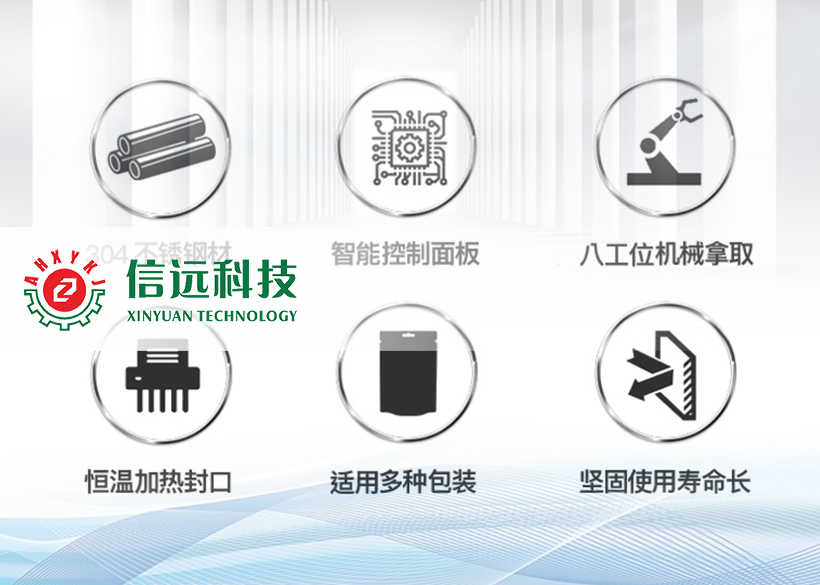 適用袋型有枕式袋、自立袋、拉鏈袋、三邊封袋、四邊封袋、盒式袋等。恒溫熱封口,可以自由調換不同規格尺寸的PET/AL/NY/PE材質的復合袋、鋁塑袋、鋁箔袋、紙袋以及印刷袋等預制包裝袋。包裝檔次高,包裝速度快,標準化程度高,成品質量有保障,利于運輸、流動、交易和貯存。市場反響和包裝效果超出客戶預期。