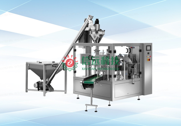 信遠科技農藥粉劑全自動旋轉式給袋包裝機組,是由密閉螺旋提升機、螺旋計量機、多工位旋轉式給袋包裝機和成品輸送機組成。可以包裝單袋克重在30-5000g范圍之間的粉狀物料,生產企業可以根據自己的需求選擇不同的包裝機型號。這套機組設備適合無粘性粉料的定量包裝,具有自動完成送料、計量、給袋、充填、封口、打印、計數、輸送等一系列功能,是食品、化工、醫藥等行業提高包裝生產效率,打造無塵環保車間,提升包裝檔次的新型自動化裝備。