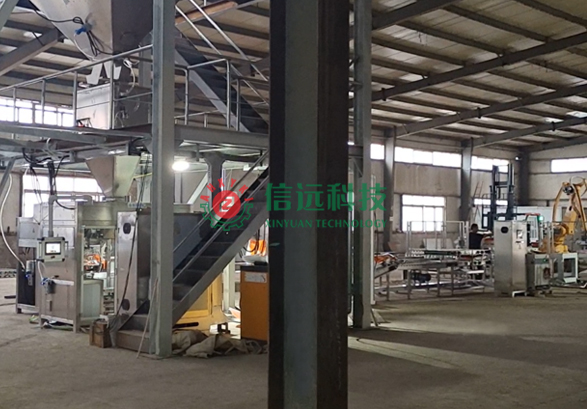 年產20萬噸摻混肥設備配置方案,生產模塊工段為:人工投料 + 自動配混 + 自動計量包裝 + 自動縫包 + 自動理包 + 機器人碼垛。該設備方案是一套“高配+”自動化生產系統,投料、配混為同步運行的雙工位產線,適合大中型規模的肥料生產企業,或對產能產量要求較高的肥料生產廠家選配購置。該套設備可以裝置在有一定層高的單層廠房內,使用面積500平方米以上,設備投資金額在70萬元左右,速度快、精度高、產量大、占地少、自動化程度高、操作簡便、可靠耐用、易于安裝維護。