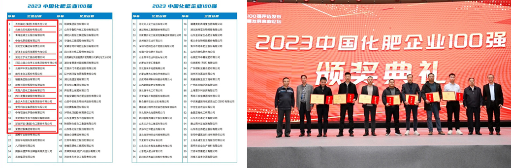 12月14日,由中國化工情報信息協會、中國化工信息中心、泰安市人民政府主辦,中國化肥信息中心、泰安市商務局(市投資促進局)承辦的“2023(第十六屆)中國化肥100強評選發布暨中國化肥產業高質量發展高峰論壇”在山東省泰安市盛大召開!本次會議以“加快培育世界一流企業 助力構建高質量發展”為主題,旨在發揮一流企業榜樣示范作用、聚焦于行業熱點、痛點,共同探討、推動我國化肥產業高質量發展。會上,2023中國化肥百強榜單正式發布!其中,貴州磷化(集團)有限責任公司位列第一,云南云天化股份有限公司、青海鹽湖工業股份有限公司分別位列二三位。通過榜單評選,引領行業理性認識新發展格局下面臨的機遇和挑戰,引導企業主動適應變革,實現轉型升級;加快培育具有行業引領力與全球競爭力的世界一流肥料企業集群。