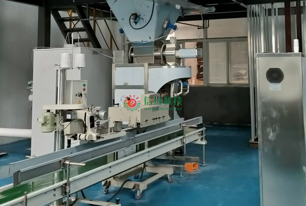 該機在人工套袋后, 輕觸微動開關,夾袋氣缸動作,抱緊包裝袋, 放料門自動打開, 自動去皮清零;加料機構快、慢兩種流速依次連續向計量斗加料, 壓力傳感器將進入計量斗內物料的重量轉換成相應的電信號, 送至儀表進行數據處理, 從面板顯示屏可看出物料重量值的變化及動作過程, 達到設定目標重量,加料過程結束,信號指示燈亮,供料螺旋停止運行,放料門關閉,物料依靠自重充填入包裝袋。夾袋機構自動打開落袋,一個工作周期結束。重新夾袋,控制儀表自動進入下一個工作周期。利用先進技術,減少人工操作,提高生產效率。