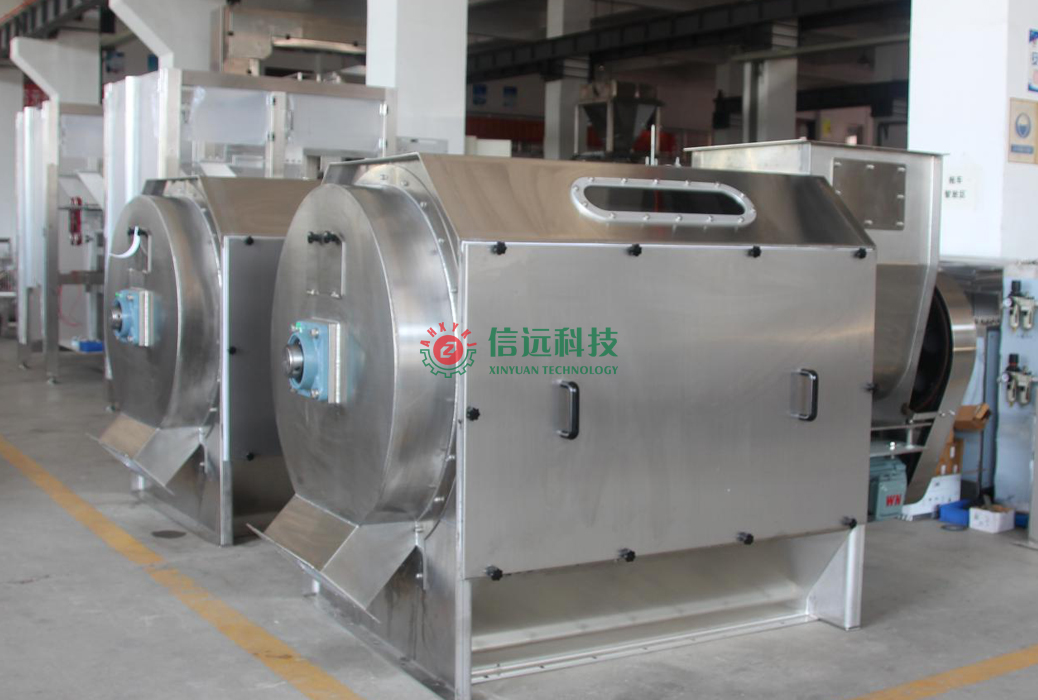 安徽信遠包裝科技有限公司研發制造的篩分除雜機,采用滾筒式結構,是一款專門應用于肥料工廠的專用配套設備。通過粉料清理篩可以有效地分離混雜于粉狀物料中的線頭、塑料、紙片、結團等大雜物料,以使篩分后的物料能順利地進入后道設備,有效保證了后道加工設備及輸送設備的正常工作。該機每小時生產能力為40-50T。