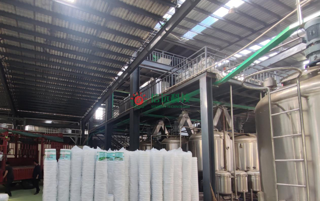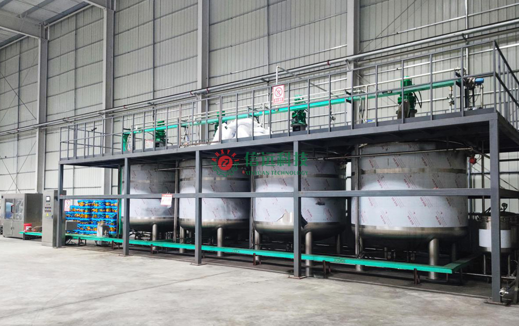 產線配置:預處理、配料、降解、乳化、計量、灌裝、封口、裝箱、封箱、碼垛等設備