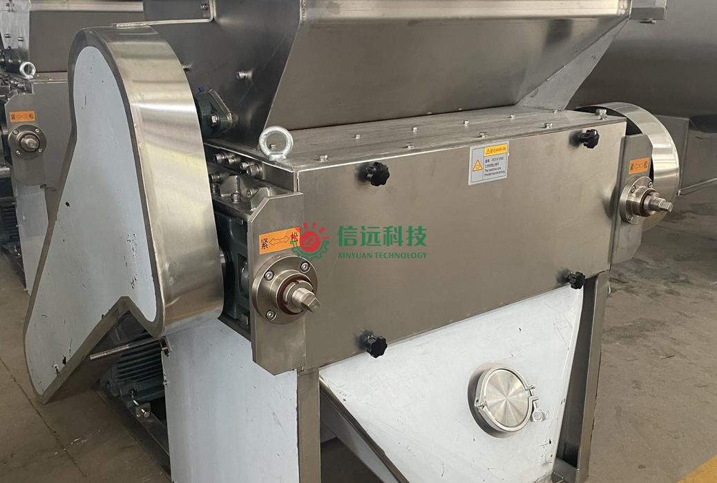 信遠(yuǎn)科技SG型對輥式尿素粉碎機(jī),根據(jù)擠壓粉碎原理設(shè)計(jì)而成,兩個圓形輥筒通過高速相向旋轉(zhuǎn),物料自上而下通過輥筒碾壓擠壓而粉碎成粉狀。該機(jī)屬于立式粉碎機(jī),方便操作,粒度目數(shù)可以在一定范圍內(nèi)自由調(diào)節(jié),進(jìn)料口裝有格柵,可防止倒料時操作安全和大塊料或者編織袋進(jìn)入;格柵下部有破塊齒輥,可破碎稍大塊物料,即使有少量結(jié)塊也不會堵塞,保證了穩(wěn)定連續(xù)的粉碎工作。