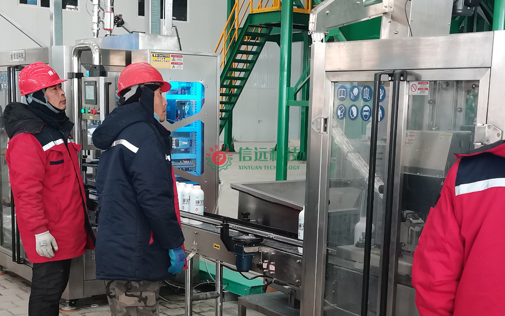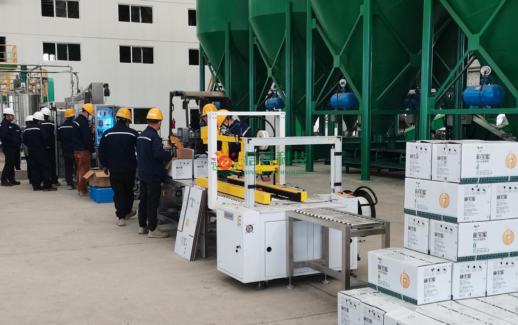 美盛化肥“施寶蜜”品牌液體水溶肥產品,由安徽信遠包裝科技有限公司設計制造的自動化液體水溶肥設備批量生產,該生產線具有配料、螯合、過濾、灌裝、封口、打包、捆扎等一體化功能,速度快、精度高、桶裝瓶裝皆可,可以生產各種不同元素配方的液體水溶肥產品。