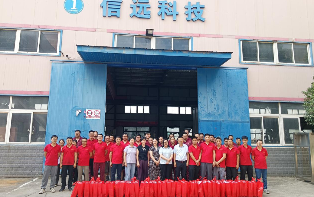 炎炎夏日送清涼,絲絲關懷暖人心。7月25日下午,肥西縣總工會黨組成員、經(jīng)審委主任李藝,在紫蓬鎮(zhèn)黨委副書記晏永花、鎮(zhèn)工會專職副主席黃莉等相關領導陪同下驅車來到安徽信遠包裝科技有限公司。在信遠公司董事長倪合青的陪同下,走進各個生產(chǎn)車間對奮戰(zhàn)在高溫一線的信遠職工進行慰問,并送上防暑降溫慰問品,把組織的關心關愛送到基層一線,讓廣大職工充分感受到工會“娘家人”的溫馨關懷。