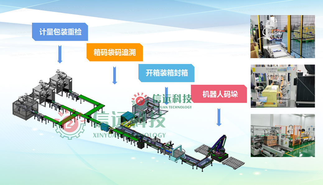 信遠科技動保獸藥成套生產線設備,采用全密閉式立體結構設計,由投料系統、預處理系統、配料系統、混合系統、計量包裝系統、輸送整形系統、機器人裝箱系統、封箱捆扎系統、噴碼貼標系統、賦碼關聯追溯系統、機器人碼垛系統等組成。可以生產符合國家新版GMP要求的袋裝西藥粉劑、中藥散劑、預混劑、消毒劑、添加劑、酸化劑、乳豬奶粉等動保產品。