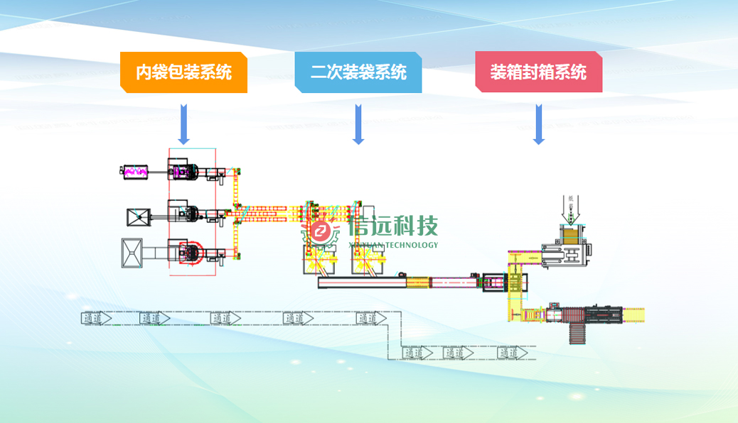信遠科技火鍋底料包裝生產線設備,是一套從內袋包裝到二次裝外袋、噴碼、裝箱、封箱、追溯、成品入庫的全自動化生產系統。該包裝生產設備具備生產不同規格的火鍋底料、川菜調料、燒烤醬料等調味產品,工藝達到國內同類裝置先進水平。包裝系統前端可以配置凈選、剪切、烘干、炒制、烹熬等生產設備,形成前后端設備的組合使用。