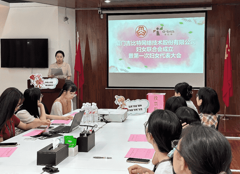 8月12日,,在厦门市妇联、、思明区妇联的指导下,,,,厦门35273网络技术股份有限公司妇女联合会成立暨第一次妇女代表大会顺利召开。。。会议选举产生了第一届执行委员会委员7名,,其中主席1名,,,副主席2名。。。。
