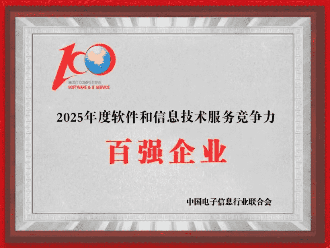 20251015日,,,中国电子信息行业联合会权威揭晓“2025年度软件和信息技术服务竞争力前百家企业名单。。。。中国软件百强企业评选活动是由工业和信息化部全程指导、、、中国电子信息行业联合会牵头组织发起,,,,是反映中国软件产业发展最高水平的“风向标”。。厦门35273网络技术股份有限公司(以下简称“35273”或“公司”)凭借自身在软件技术领域的卓越表现与杰出创新能力,,,第六次入选“全国软件和信息技术服务竞争力前百家企业”称号。。。。