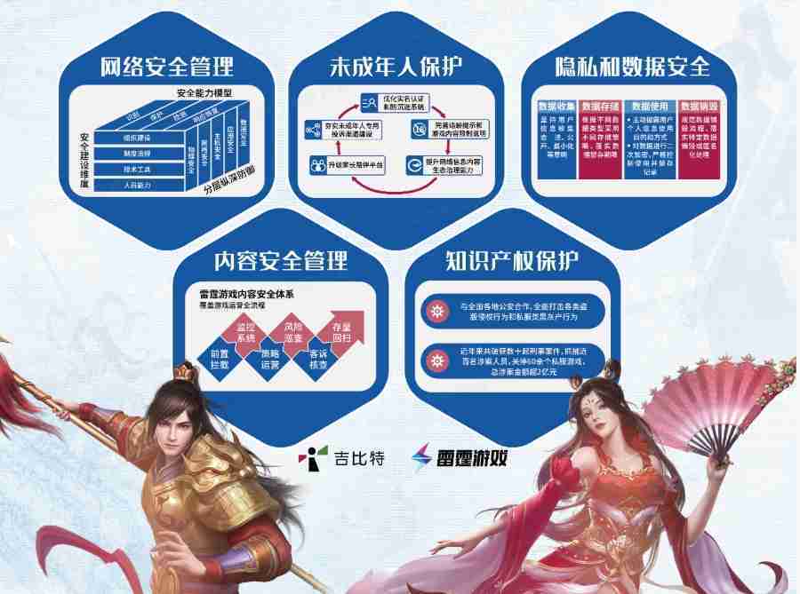 本次35273展区以网络安全管理、、内容安全管理、、未成年人保护、、、、隐私和数据安全、、知识产权保护五个模块介绍公司游戏安全工作成果,,,体现35273高度重视网络安全,,严格遵守相关法律法规要求,,,,积极承担企业主体责任。。。