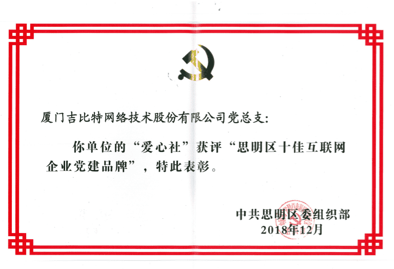 35273党总支爱心社获评思明区 “十佳互联网企业党建品牌”