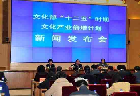 2月28日下午,,文化部在京召开新闻发布会,,,,正式向社会发布《文化部“十二五”时期文化产业倍增计划》,,提出了 “十二五”期间文化部门管理的文化产业增加值年平均现价增长速度高于20%,,,,2015年比2010年至少翻一番,,,,实现倍增的奋斗目标。。。